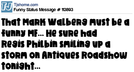 X That Mark Walberg must be a funny MF... He sure had Regis Philbin smiling up a storm on Antiques Roadshow tonight...