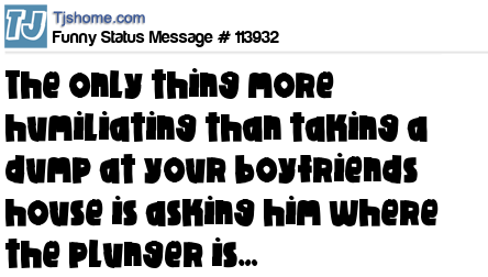 X says The only thing more humiliating than taking a dump at your boyfriends house is asking him where the plunger is…