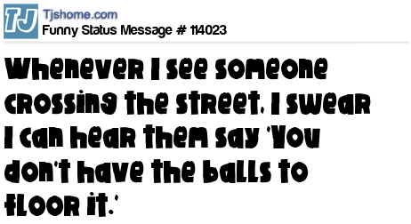 X says Whenever I see someone crossing the street, I swear I can hear them say 'You don't have the balls to floor it.'