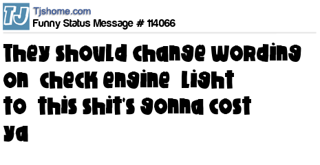 - # 110700 If my "check engine" light would just "check my wallet"....It would know there's nothing I can do about it.