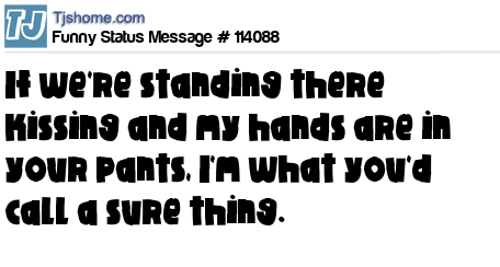 X says If we're standing there kissing and my hands are in your pants, I'm what you'd call a sure thing.