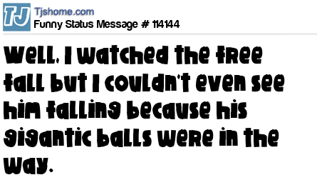 X is Well, I watched the free fall but I couldn't even see him falling because his gigantic balls were in the way.