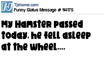 - # 152174 My Hamster passed today,,,, Yeah, he fell asleep at the wheel.... :(