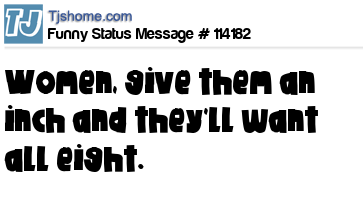 - # 73134 Give a man an inch he takes a mile... give a woman an inch and she will laugh her f*cking head off!!