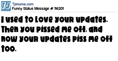 X says I used to love your updates. Then you pissed me off, and now your updates piss me off too.