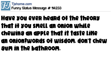 X says Have you ever heard of the theory that if you smell an onion while chewing an apple that it taste like an onion?words of wisdom, don't chew gum in the bathroom.