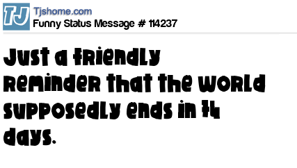 12/21/12 ... sixty six more days ... don't give people false hope of that additional week