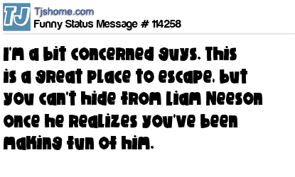 X says I'm a bit concerned guys. This is a great place to escape, but you can't hide from Liam Neeson once he realizes you've been making fun of him.