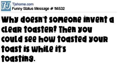 X Why doesn't someone invent a clear toaster? Then you could see how toasted your toast is while it's toasting.