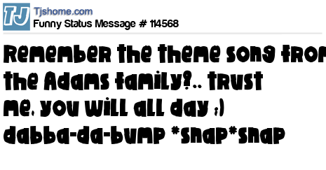 - # 39679 Guess who has The Addams Family theme song stuck in their head?...... You. *snap snap*