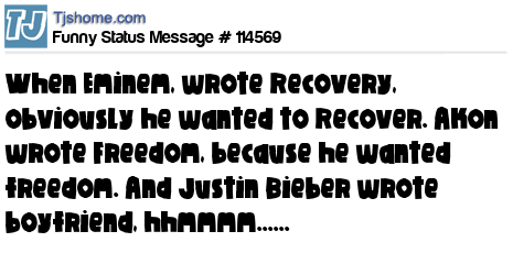 X says When Eminem, wrote Recovery, obviously he wanted to Recover. Akon wrote Freedom, because he wanted freedom. And Justin Bieber wrote boyfriend, hhmmmm......