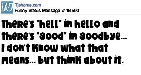 - # 93587 There's "hell" in hello and there's "good" in goodbye. I don't know what that means, but think about it.