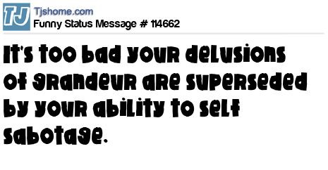 X says It's too bad your delusions of grandeur are superseded by your ability to self sabotage.