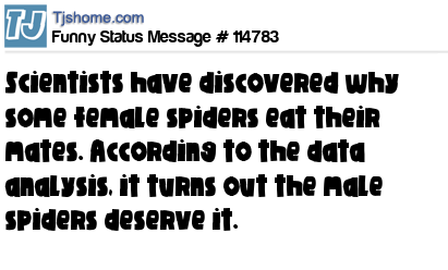 - # 115960 Did you know some female spiders eat the male spider after mating? She's like "Ya sure I'll have your babies and you for dinner"