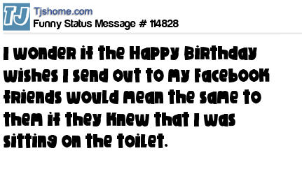 X I wonder if the Happy Birthday wishes I send out to my Facebook friends would mean the same to them if they knew that I was sitting on the toilet.