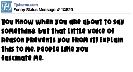 - # 66006 You know when you are about to say something but that little voice of reason prevents you from it. Explain this to me, people like you fascinate me.