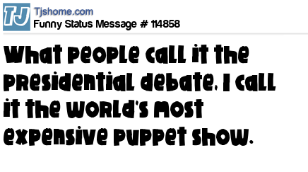 - # 113761 I watched a great puppet show last week. I think it was called The American Presidential debates or something