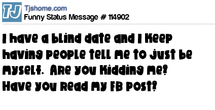 X I have a blind date and I keep having people tell me to just be myself. Are you kidding me? Have you read my FB post?