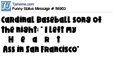 X is Cardinal Baseball song of the night: " I left my ̶̶H̶̶e̶̶a̶̶r̶̶t̶̶ Ass in San Francisco"