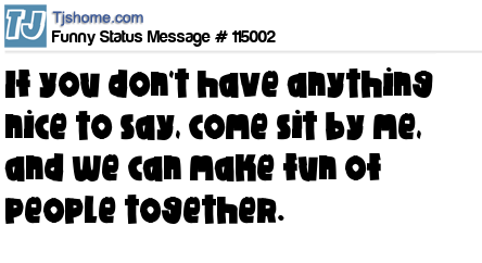 - # 149319 If you don’t have anything nice to say, come sit by me, and we can make fun of people together.