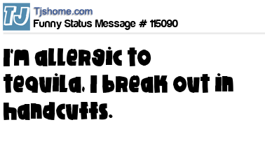 - # 145717 I dont drink these days. I am Allergic to alcohol and Narcotics. I break out in handcuffs.