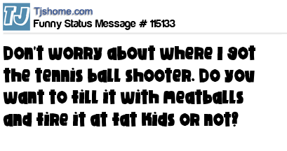 X Don't worry about where I got the tennis ball shooter. Do you want to fill it with meatballs and fire it at fat kids or not?