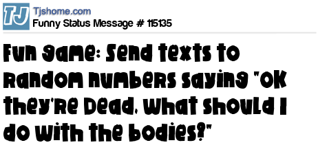 X Fun game: Send texts to random numbers saying "OK they're Dead, what should I do with the bodies?"