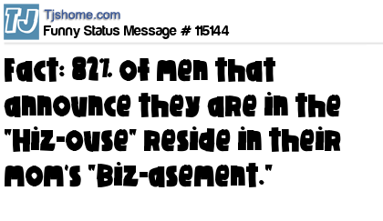 X is Fact: 82% of men that announce they are in the "Hiz-ouse" reside in their mom's "Biz-asement."