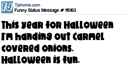 - # 115397 This year for Halloween I'm handing out Chocolate & Caramel covered Onions. Halloween is fun.