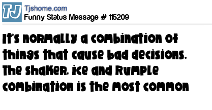 - # 114606 It's normally a combination of things that cause bad decisions. The tequila, lime, salt combination is the most common.