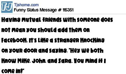 - # 71621 I wonder if one day somebody will ever come and knock on my door and tell me “Hey we have 7 mutual friends in facebook", Can I come in?