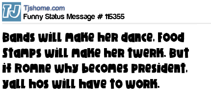 X is Bands will make her dance, Food Stamps will make her twerk. But if Romne why becomes president, yall hos will have to work.