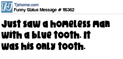 X says Just saw a homeless man with a blue tooth. It was his only tooth.