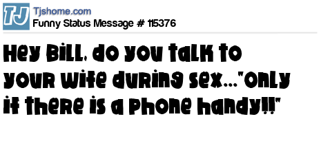 X Hey Bill, do you talk to your wife during sex..."Only if there is a phone handy!!"