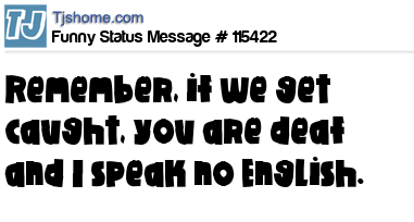 - # 124133 Just remember, If we get caught you're deaf and I don't speak English.