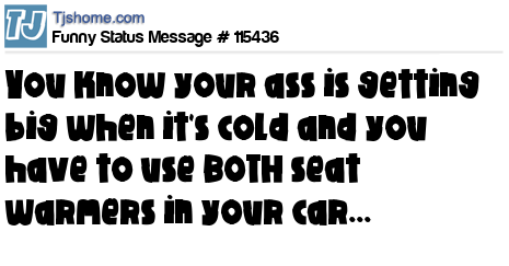 X  You know your ass is getting big when it's cold and you have to use BOTH seat warmers in your car...