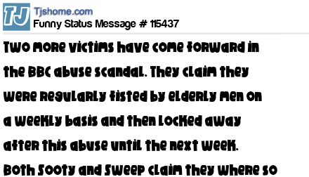 X is Two more victims have come forward in the BBC abuse scandal. They claim they were regularly fisted by elderly men on a weekly basis and then locked away after this abuse until the next week. Both Sooty and Sweep claim they where so traumatized it left the