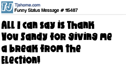 X All I can say is Thank You Sandy for giving me a break from the Election!