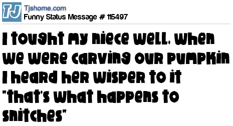 - # 35462 As my 5 year-old nephew and I carved my pumpkin today, I swear I heard him say, “That's what happens to snitches.”