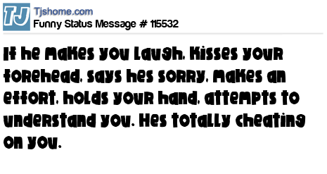 X says If he makes you laugh, kisses your forehead, says hes sorry, makes an effort, holds your hand, attempts to understand you. Hes totally cheating on you.