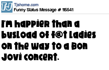 X I'm happier than a busload of f@t ladies on the way to a Bon Jovi concert.