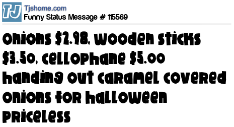 - # 115163 This year for Halloween I'm handing out Carmel covered onions. Halloween is fun.