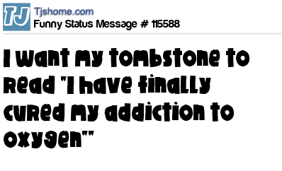X is I want my tombstone to read "I have finally cured my addiction to oxygen""