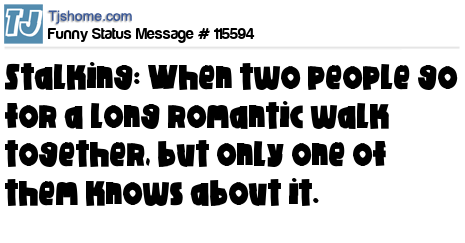 - # 115423 Stalking is when two people go for a long romantic walk together but only one of them knows about it.