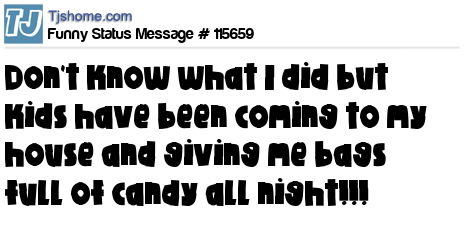 X Don't know what I did but kids have been coming to my house and giving me bags full of candy all night!!!