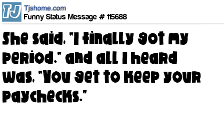 X says She said, "I finally got my period." and all I heard was, "You get to keep your paychecks."