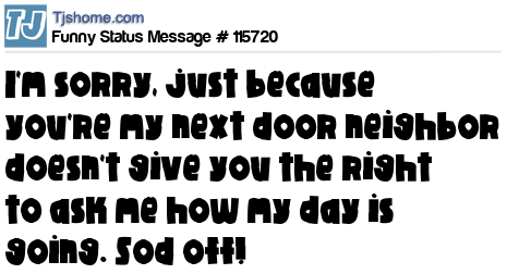 X says I'm sorry, just because you're my next door neighbor doesn't give you the right to ask me how my day is going. Sod off!