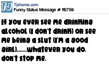 X says If you ever see me drinking alcohol (I don't drink) or see me being a slut (I'm a good girl).......whatever you do, don't stop me.