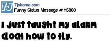 - # 18774 Just had a fight with my alarm clock. It wanted me to wake up, I disagreed. Things got violent. Now the alarm clock is broken and I'm wide awake. Not sure who won, though.