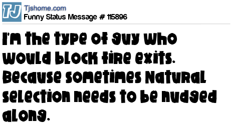 X says I'm the type of guy who would block fire exits. Because sometimes Natural selection needs to be nudged along.